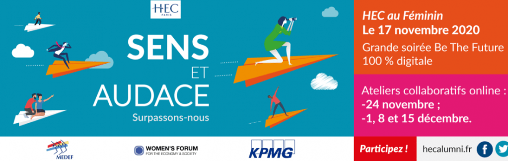 BE THE FUTURE 2020 Grande Soirée 100% digitale sur le thème Sens et Audace le 17 novembre à partir de 18h30 en partenariat avec le Women’s Forum for the Economy and Society, KPMG, le MEDEF